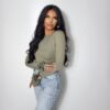 ŚCIĄGACZE Z BOKU BLUZKI, KTÓRE UMOŻLIWIAJĄ REGULACJĘ DŁUGOŚCI BLUZKI.